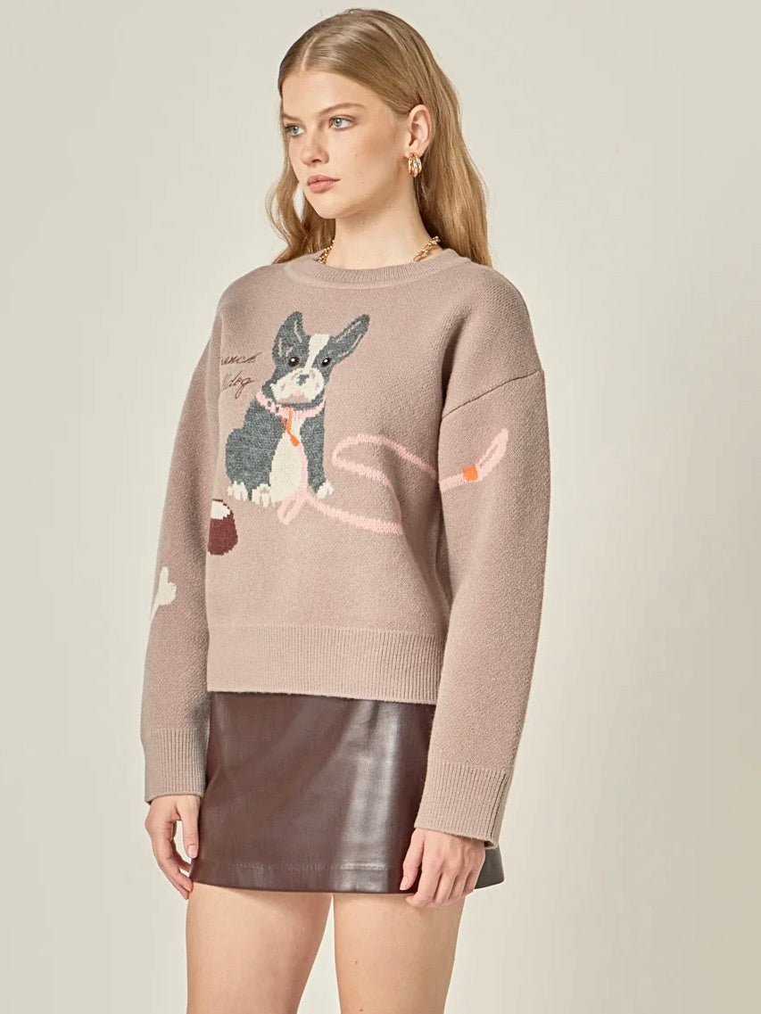 Add a playful touch to your knitwear collection with this French Bulldog sweater, designed in a soft knit with a detailed dog graphic and coordinating accents. The relaxed fit and round neckline make it an easy, comfortable piece for everyday wear, while the warm, neutral tones keep the look polished and versatile. Style it with denim, skirts, or layered basics for a cozy outfit with personality.