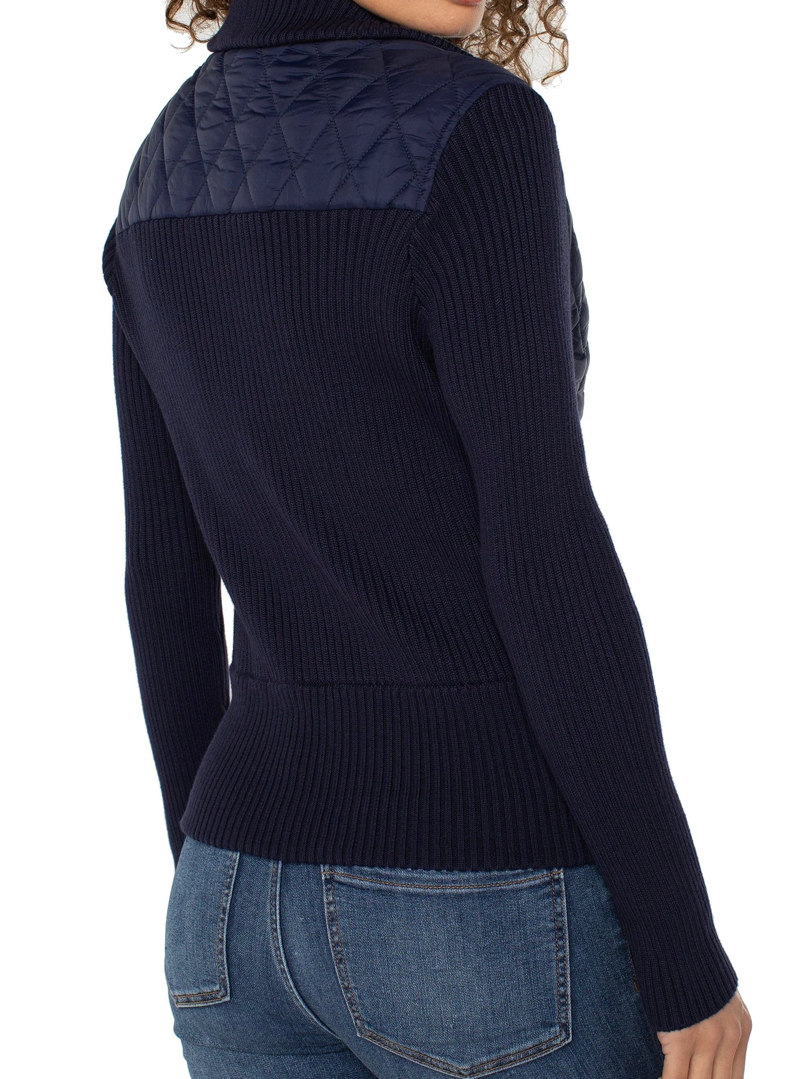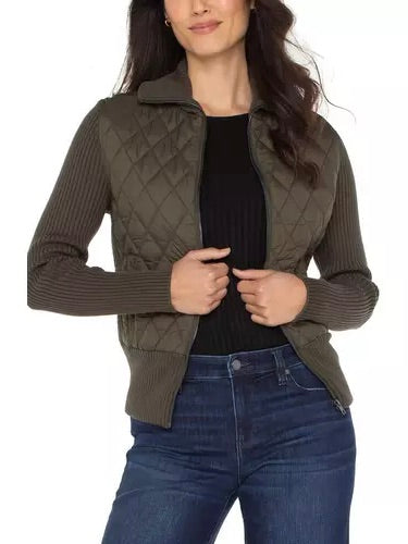 {Liverpool} Long Sleeve Zip Front Sweater/Woven Jacket