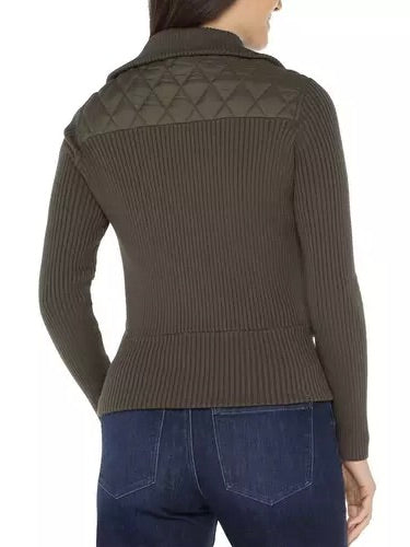 A versatile layer that blends comfort and polish. This quilted zip front sweater jacket features a soft knit collar, ribbed sleeves, and a woven quilted body for added texture and warmth. Designed with side welt pockets and a clean silhouette, it transitions effortlessly from laid-back days to refined nights.