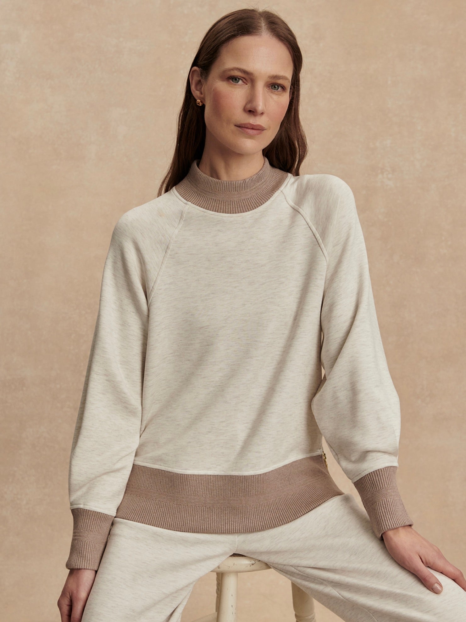 The Varley Loxley Raglan Boyfriend Sweater blends sporty edge with everyday comfort. Designed with a mock neckline, contrast trim, and side zipper detail, it adds a modern twist to a relaxed silhouette. The soft, drapey fabric makes it an effortlessly cool layer from studio to street.