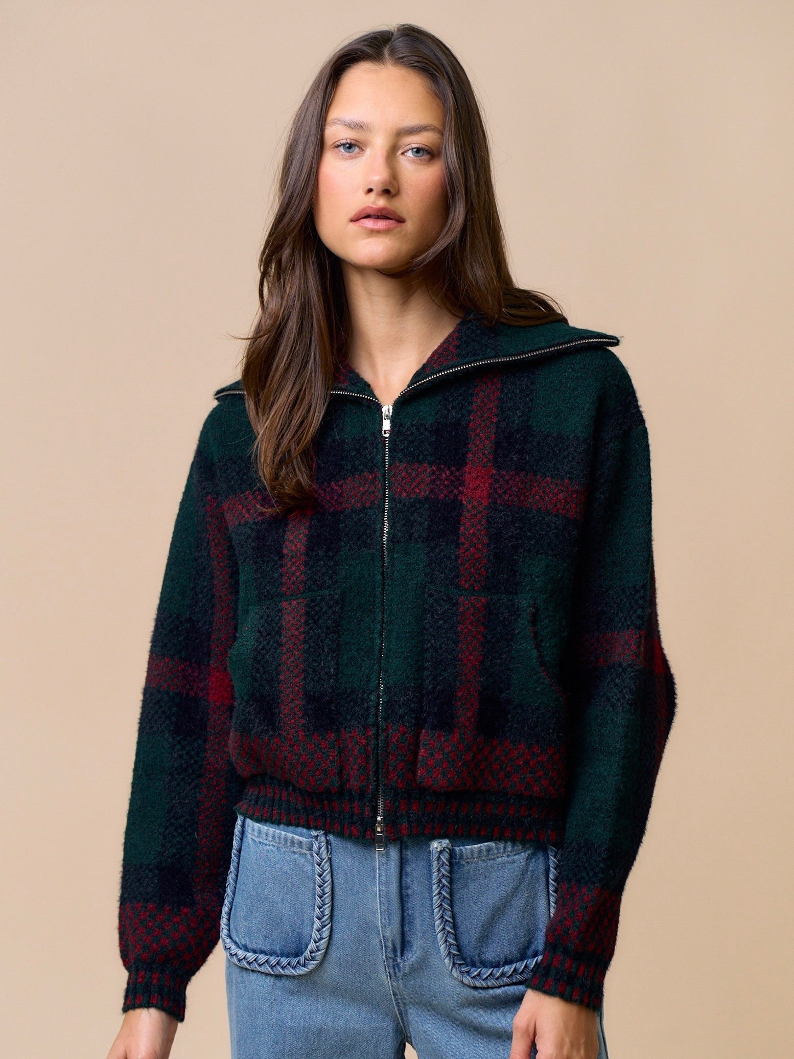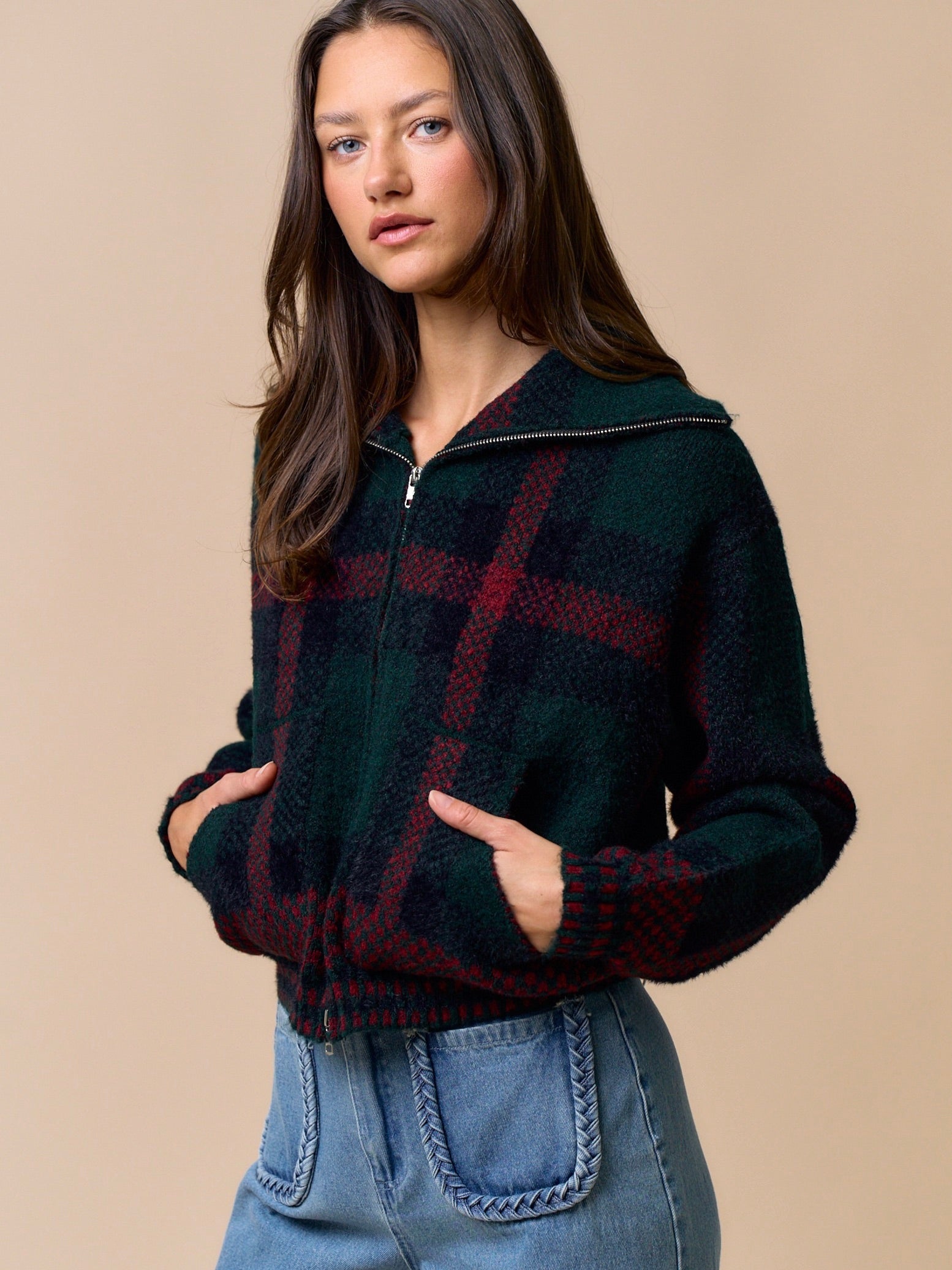 Cozy and on-trend, this zip-up jacket features an oversized collar and classic plaid pattern for a bold boutique statement. Its relaxed fit and warm fabric make it perfect for layering during cooler seasons. Pair with denim or leggings for a stylish, casual look.