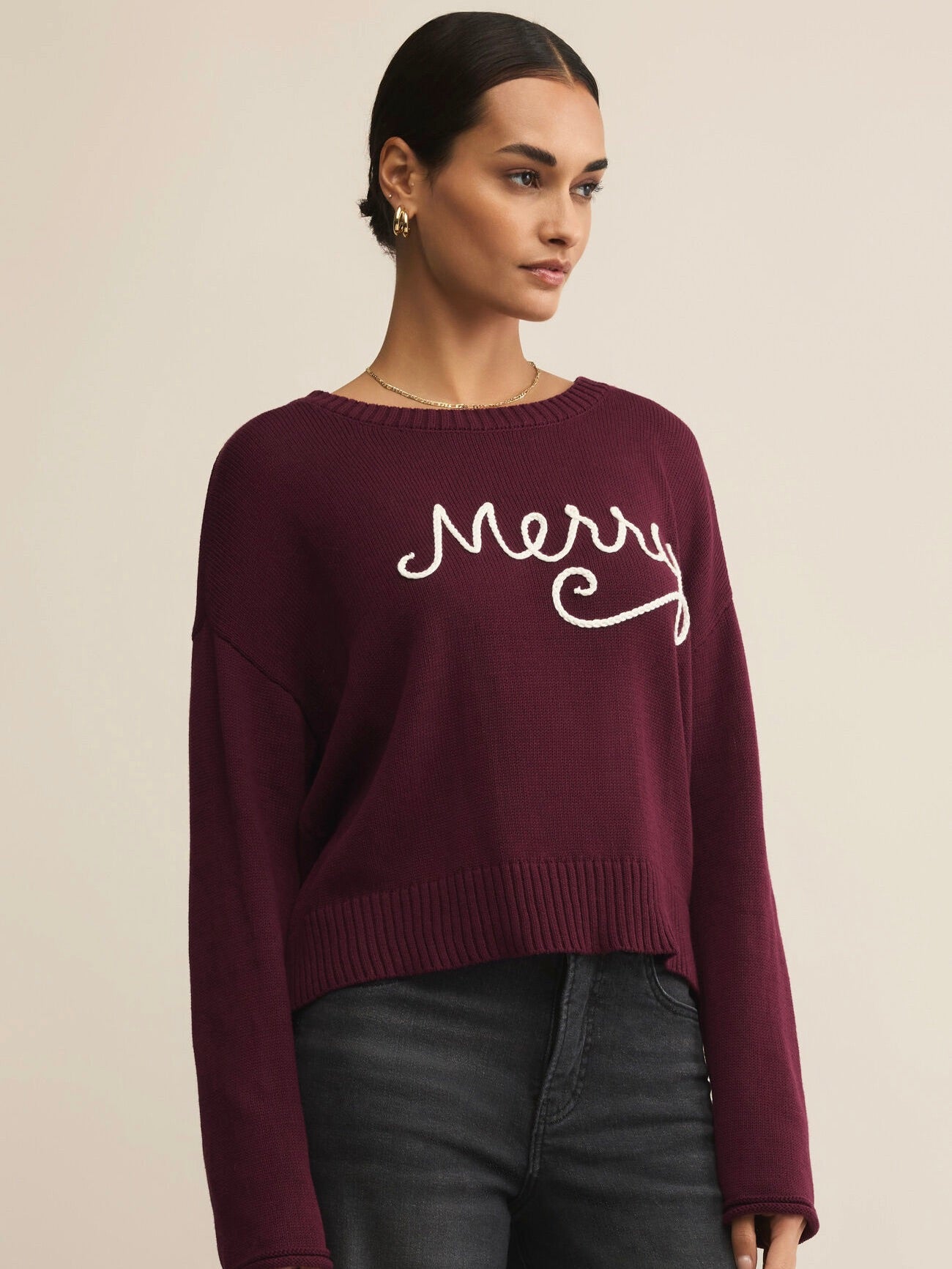 The Sienna Merry Sweater spreads cheer wherever you go! Soft, lightweight cotton and a relaxed fit make it comfy for everyday wear, while the bold “Merry” across the front adds a fun, festive touch. Perfect for layering or wearing solo on casual days.