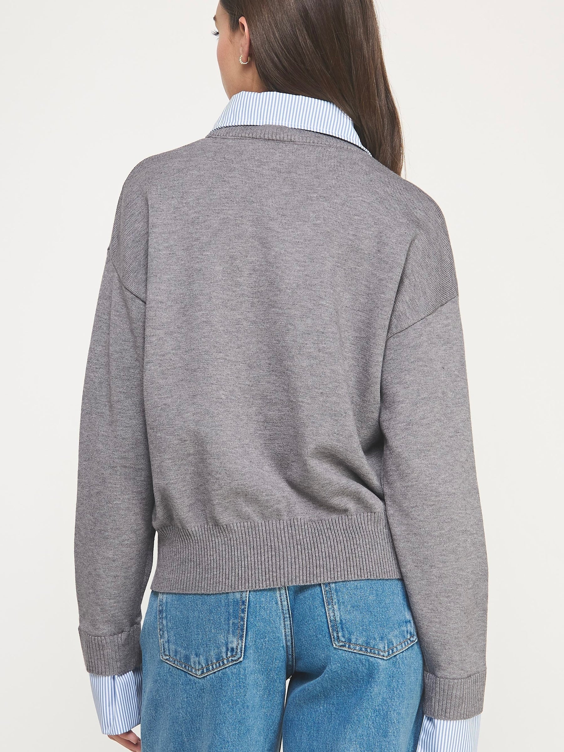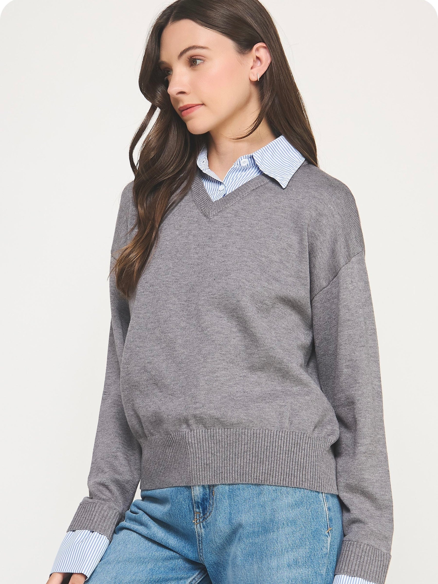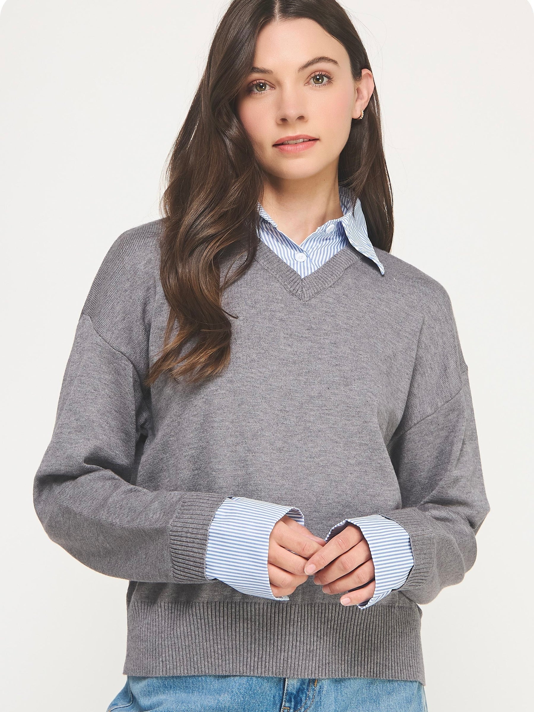 The Drew Knit Top brings a polished touch to everyday wear with its collared, layered-look design. Long sleeves and a V-neckline keep it classic and comfortable, making it perfect for workdays or weekend outings. Effortless style meets cozy versatility in this wardrobe essential.