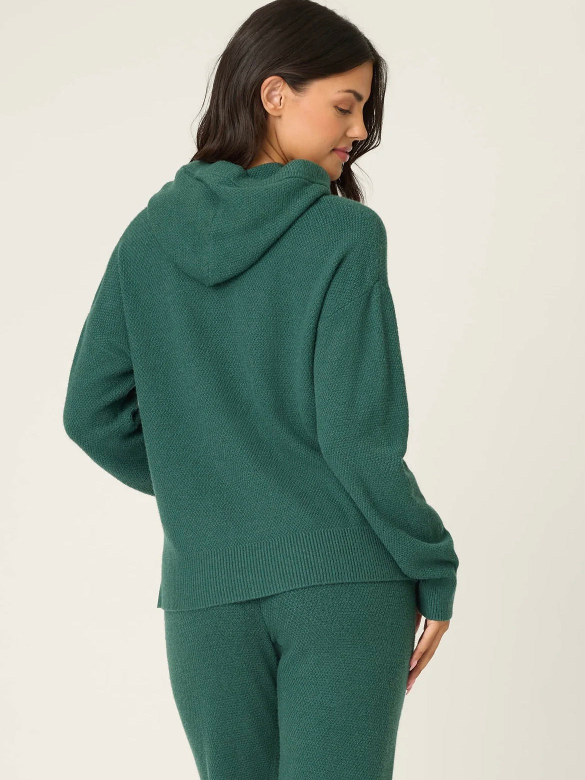 Meet your new lounging favorite. This sweater knit hoodie set is soft yet structured, featuring a drawstring hoodie with a relaxed fit. It’s a cozy essential that doubles as a festive layer for the holiday season.