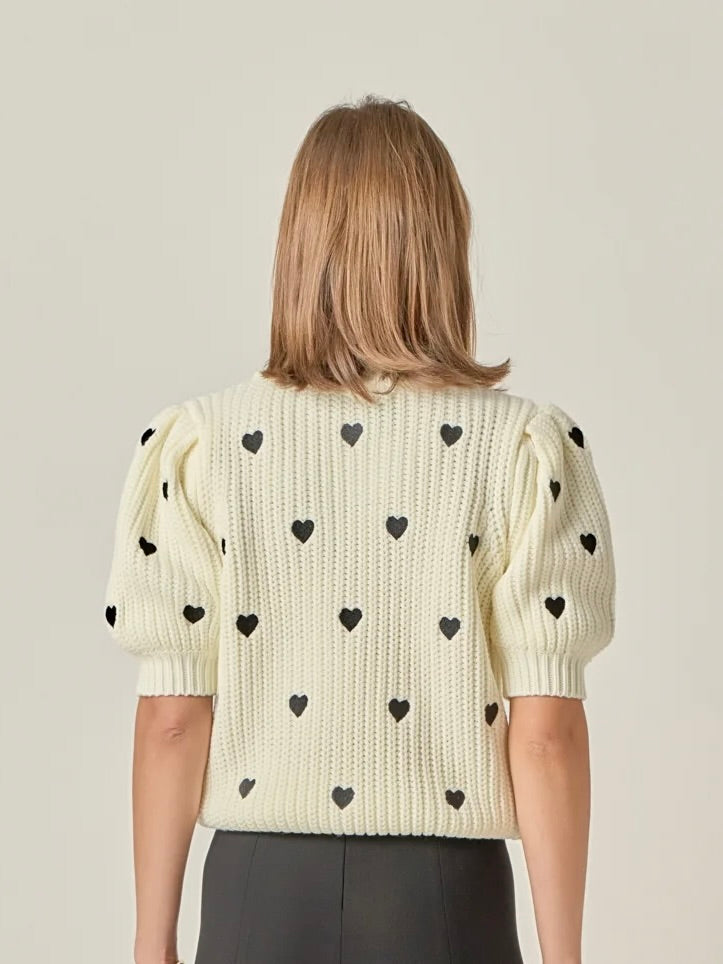 Look and feel great in this stylish Sweat Talker Mock Neck Sweater. Crafted from a comfortable knit fabric, it features a bold heart design, puffy short sleeves, and a mock neck. Perfect for date nights or everyday wear, this sweater is sure to turn heads. Elevate your wardrobe with this unique, one-of-a-kind piece made just for you.