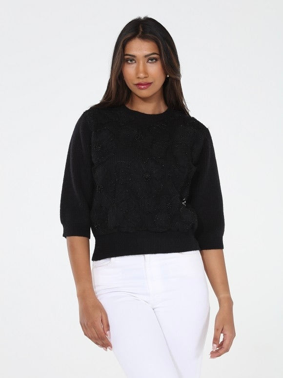The Taffy Textured Floral Sweater is equal parts sweet and chic. With its delicate lace front and playful keyhole button at the back, it adds just the right touch of charm. A fresh pick for dressing up your everyday look.