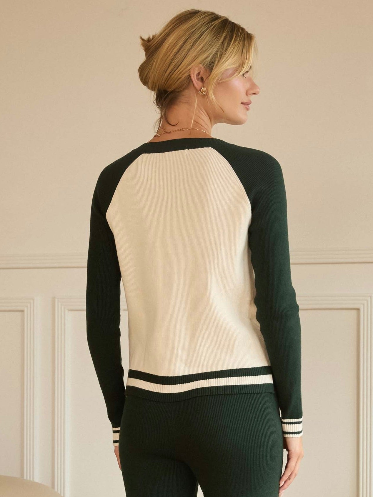 The Contrast Sleeve Pullover Top adds a sporty, playful touch to your everyday wardrobe. Color-blocked raglan sleeves and striped cuff accents bring subtle interest to a classic round-neck silhouette. Comfortable and versatile, it’s perfect for layering or wearing on its own.