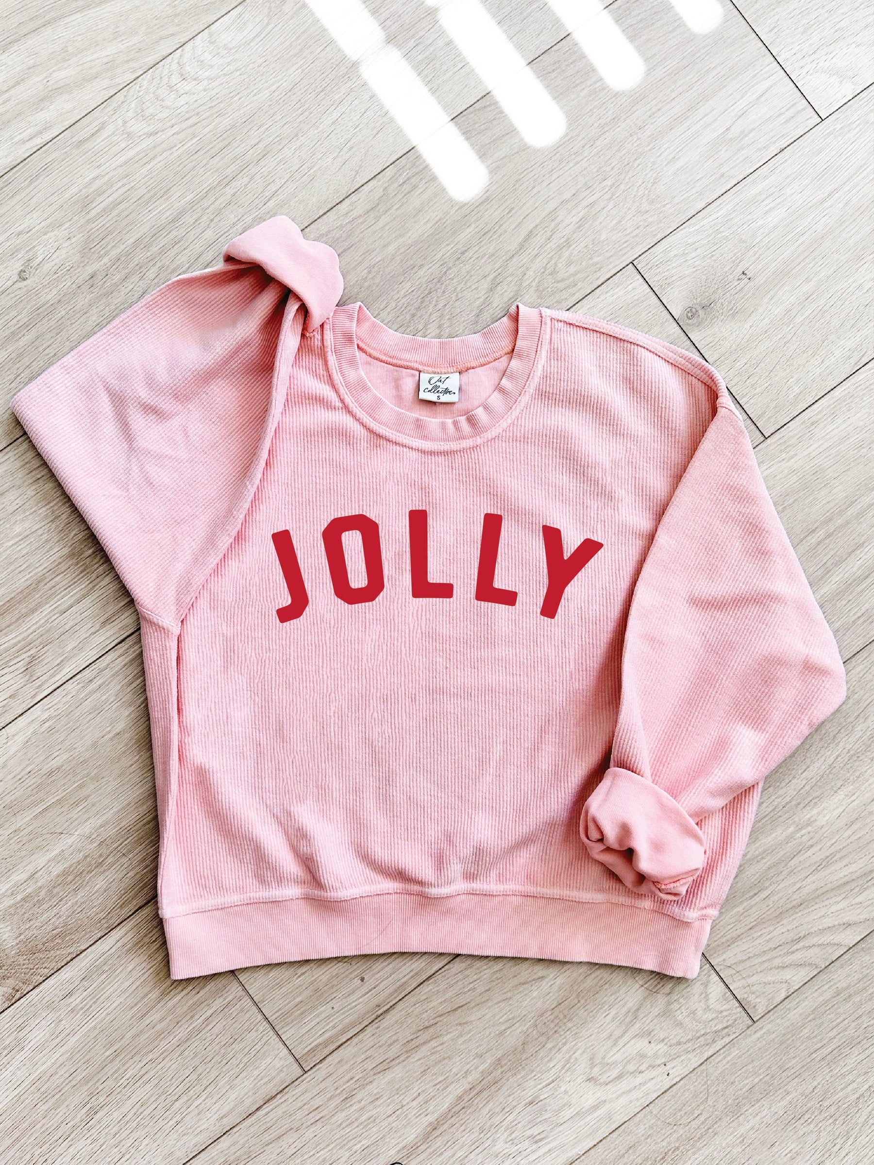 The Jolly Cropped Thermal Vintage Pullover is cozy, playful, and perfect for festive vibes. Its cropped fit and soft thermal fabric make it ideal for layering or pairing with high-rise jeans. Bold “JOLLY” lettering adds a cheerful, holiday-ready touch.