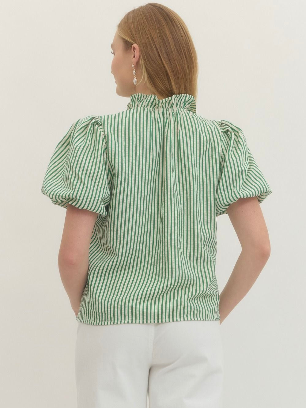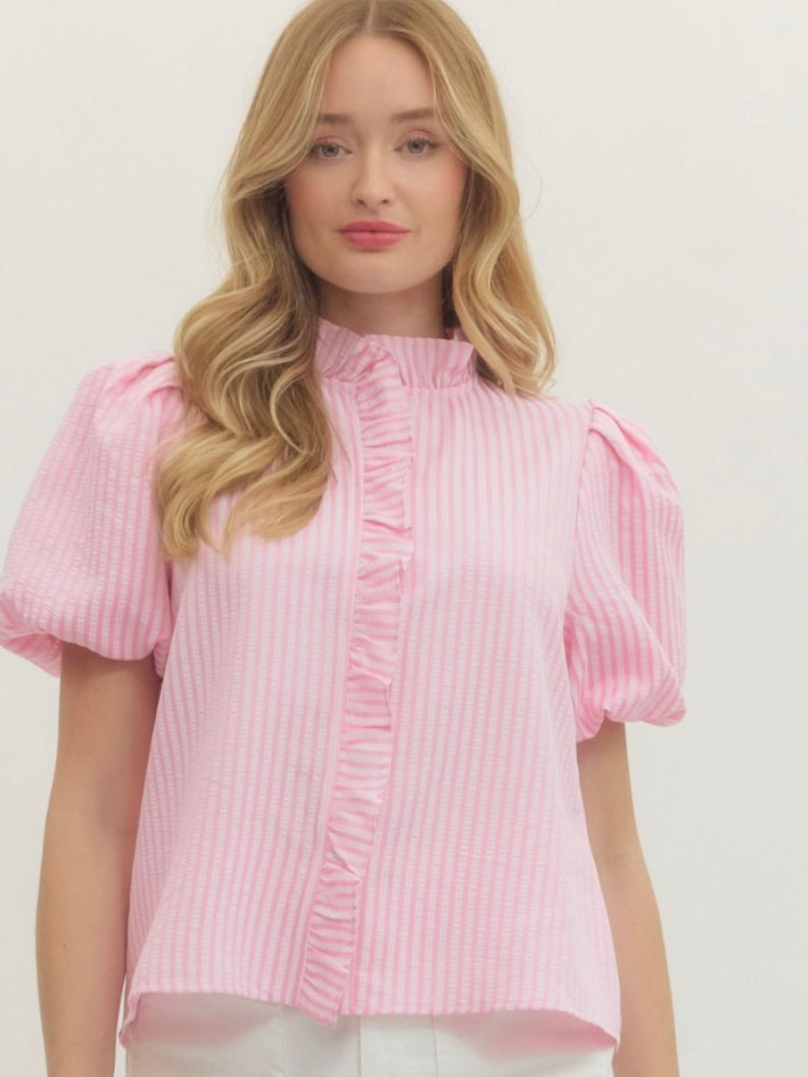 The Marcy Top is playful, pretty, and easy to style. Its ruffled collar and puff sleeves add a fun, feminine touch, while the simple silhouette keeps it feeling effortless. Perfect for dressing up or down.