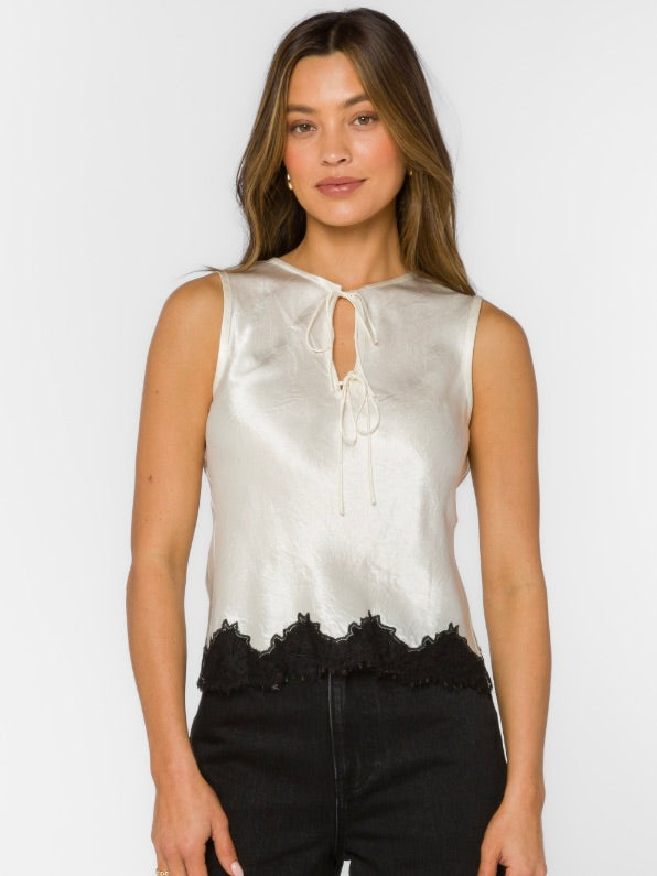 The Merida Top is your go-to for when casual needs a hint of dressy. With its sleek fabric and front tie detail, it strikes the perfect balance between effortless and polished. The contrast hem adds just the right touch of flair to make any outfit feel a little more special.