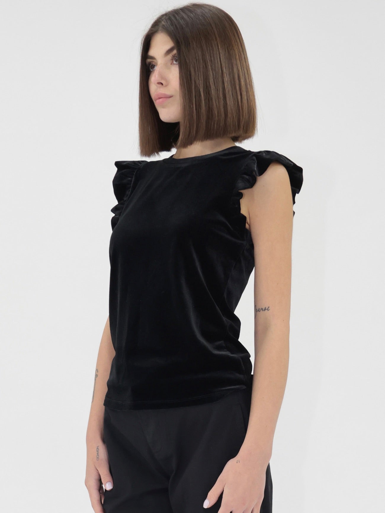 Soft, rich velvet gives the North Top its luxe appeal, while ruffled shoulders add a playful, feminine touch. Perfect for pairing with skirts or trousers, it’s your go-to for festive nights or cozy evenings out.