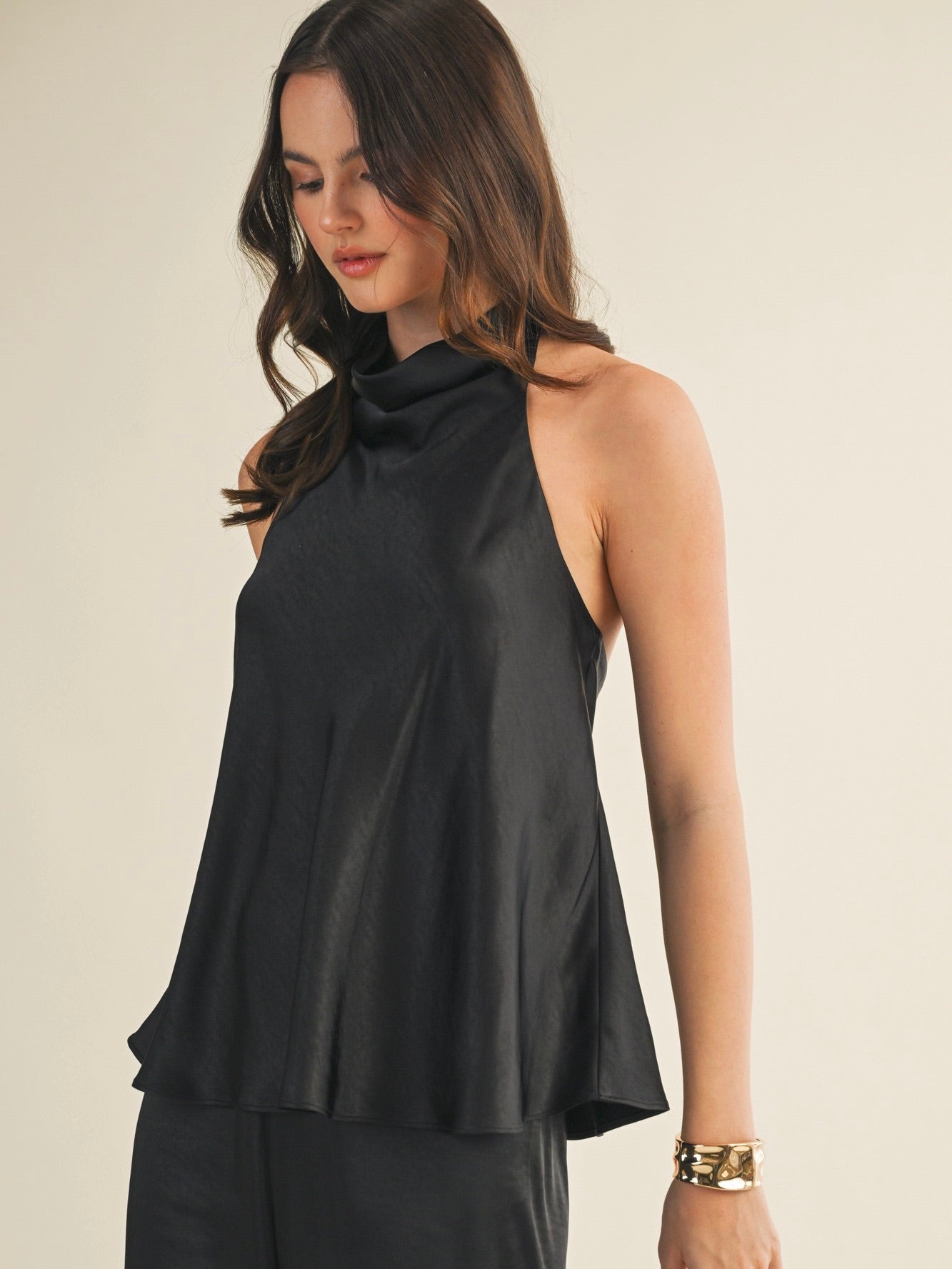 The Satin Halter Neck Top brings effortless glow to any night out. Its sleek halter neckline and sleeveless silhouette highlight the shoulders beautifully, while the satin finish adds a soft, luminous sheen. Fully lined for a smooth, comfortable fit, it’s the kind of piece that instantly elevates whatever you pair it with. Perfect for parties, date nights, or anytime you want that just-right touch of shine.