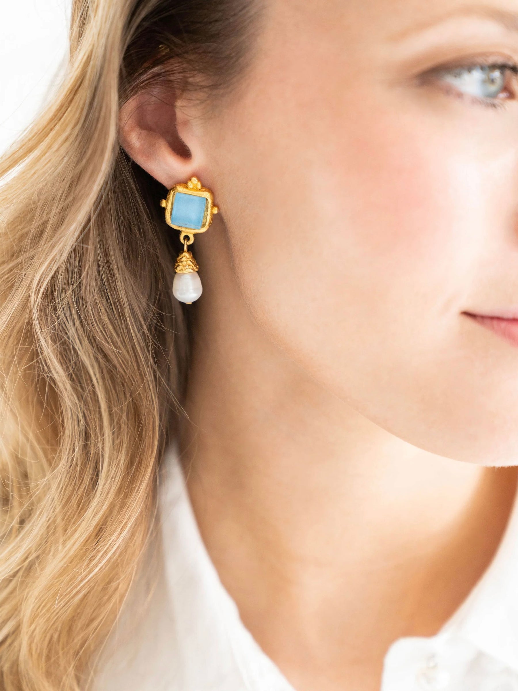 • Triple-plated 24k Gold, Genuine French Glass, Genuine Freshwater Pearl