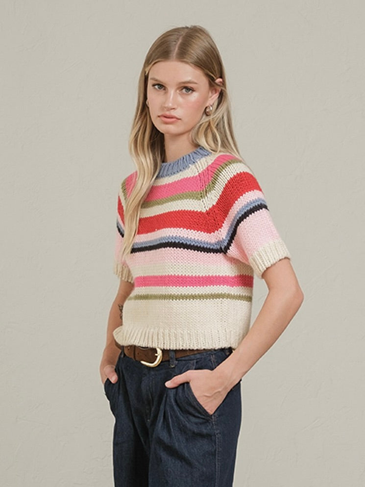 Chunky Knit Short Sleeve Sweater – Vintage Charm