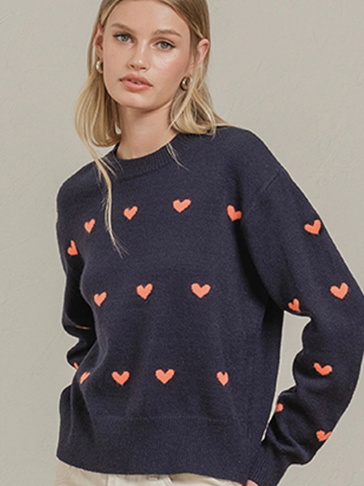 Playful yet cozy, this Heart Point Knit Sweater is a favorite. It offers warmth with just the right amount of stretch and brings a touch of fun to every day. The relaxed fit and ribbed trim make it versatile for layering over shirts or pairing with denim and skirts. This sweater is perfect for adding a cheerful twist to any cold-weather wardrobe.