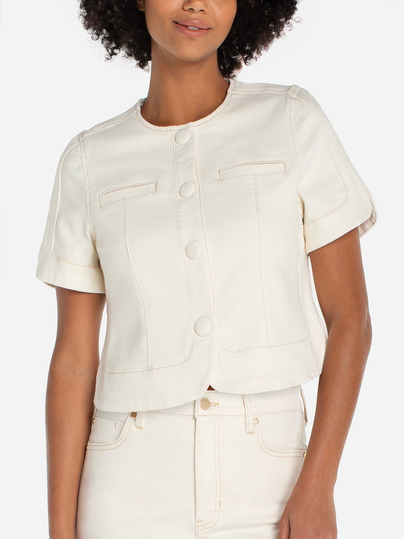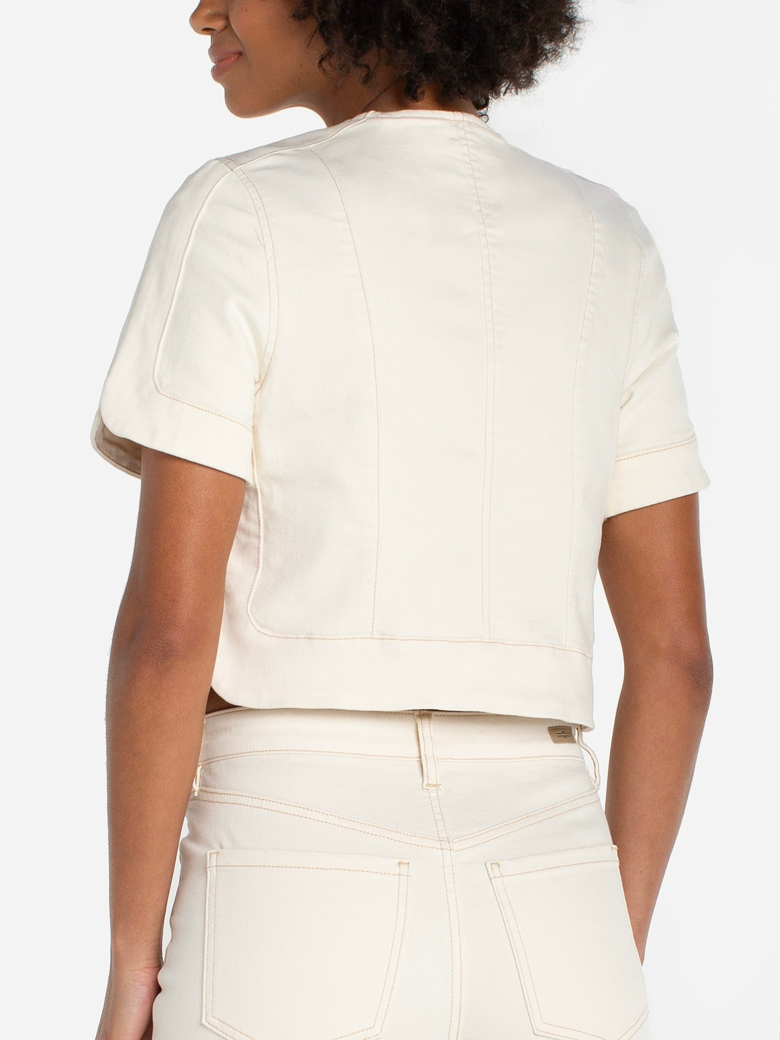 {Liverpool} Collarless Short Sleeve Cropped Jacket