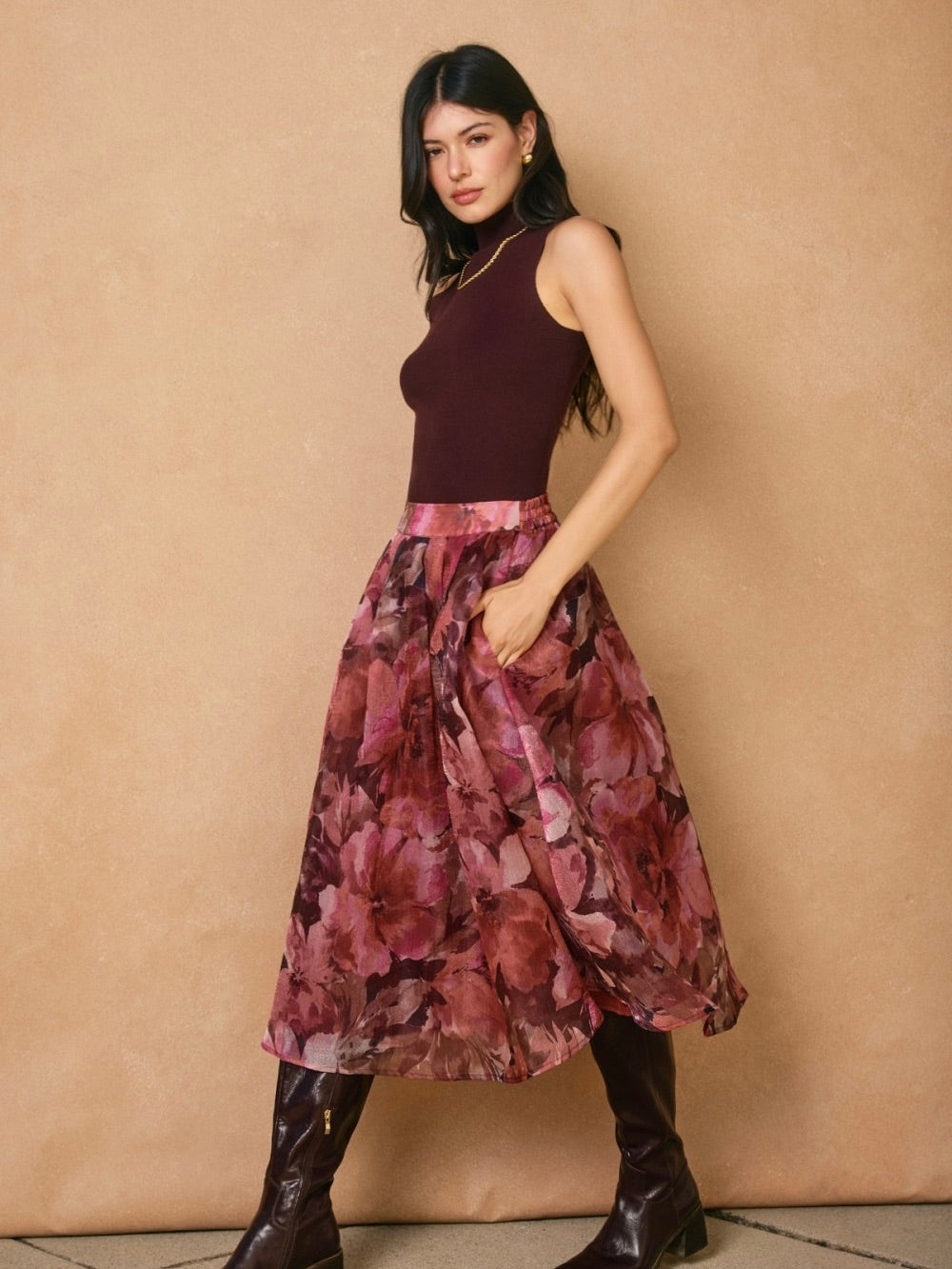 The Divine Midi Skirt is effortlessly flattering with a comfortable elastic waist and A-line silhouette. Front shirring adds subtle texture, while the midi length keeps it versatile for day-to-night styling. Pair with a tucked-in top or cozy sweater for a polished, easy look.