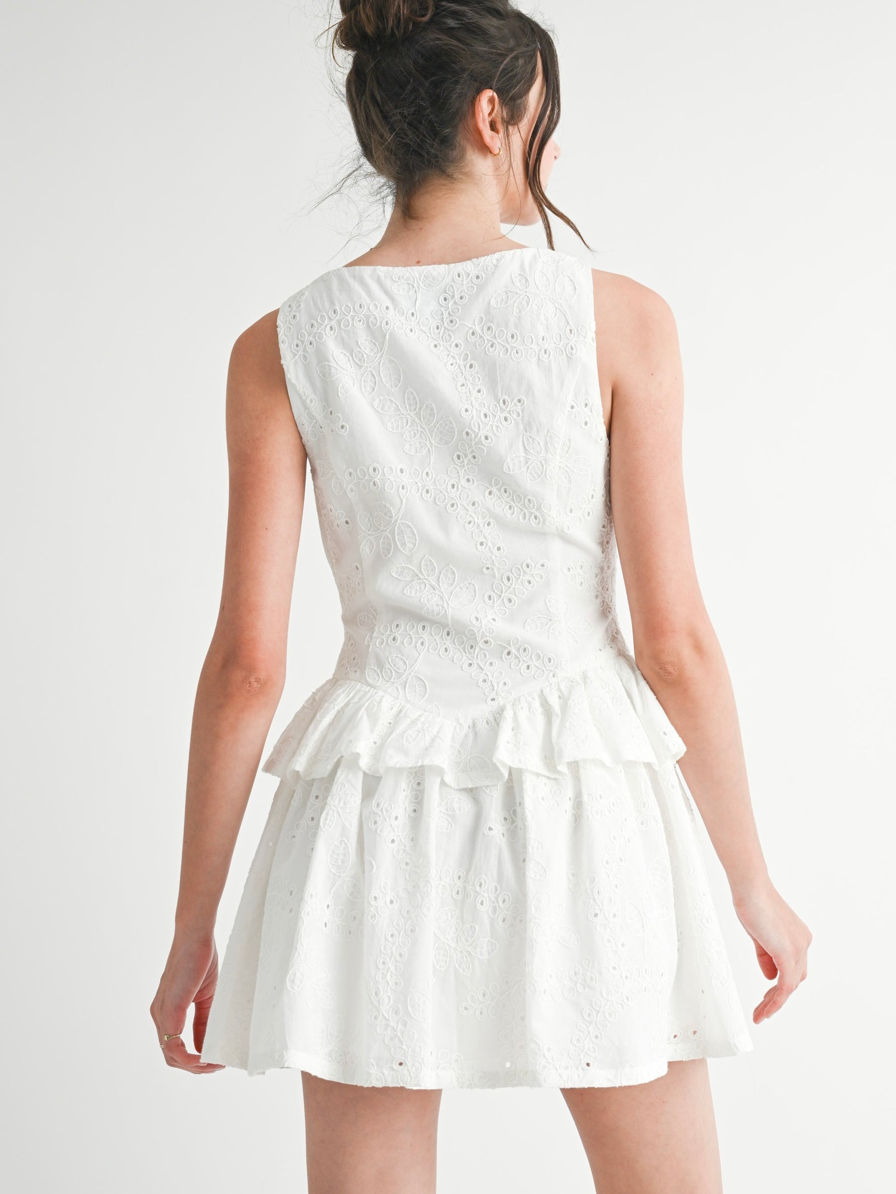 Eyelet Peplum Waist Dress