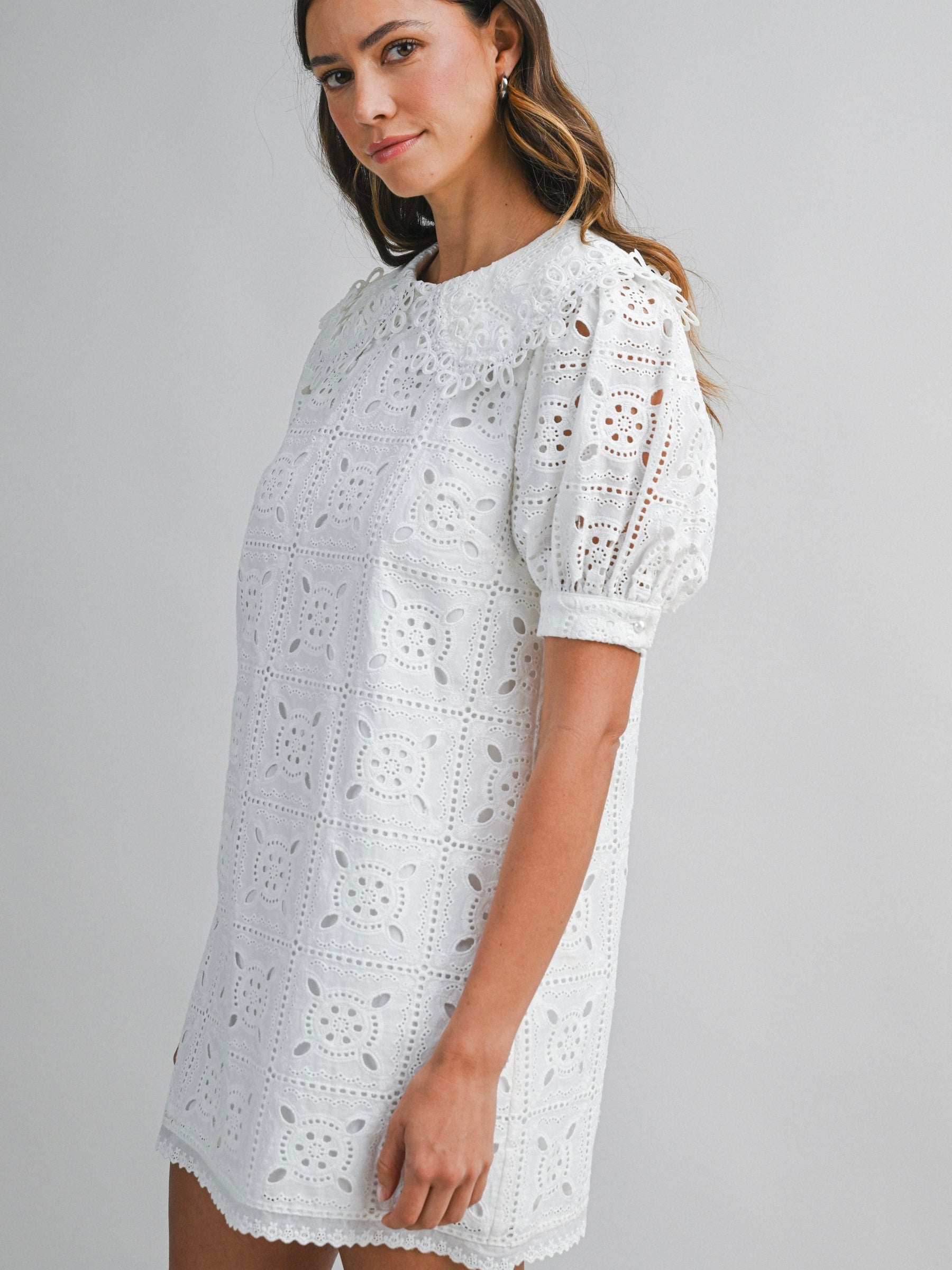 Eyelet Peter Pan Collar Mini Dress