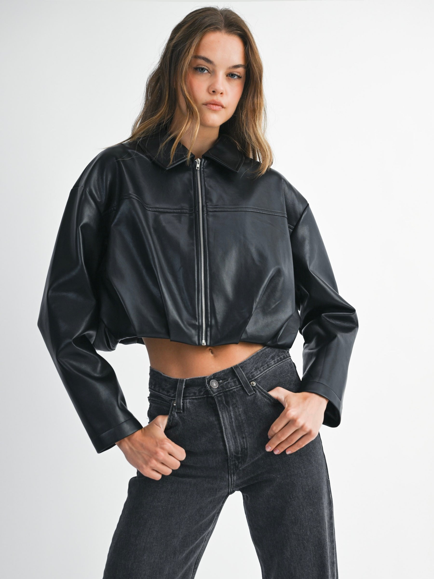 The Britney Jacket is all about making a statement without saying a word. Its bubble hem brings a fresh, unexpected twist to your look. Slip it on and watch your outfit instantly level up with effortless cool. Perfect for adding edge to any day or night.