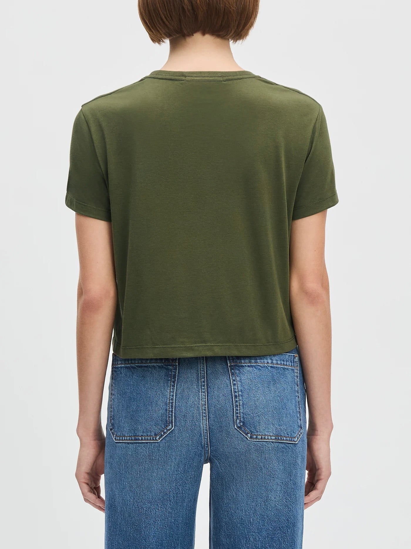 So there's no confusion. This classic cut tee says it all--simply styled in a tri-blend cotton with a cropped fit. Wear it to run errands, style it for a Friday night and rock it at the next family reunion.