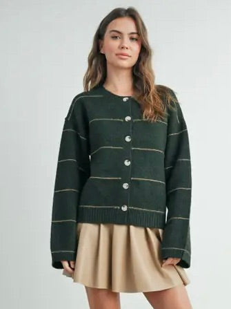 This cozy cardigan features a classic button-front design and stylish striped pattern, perfect for layering over any outfit! Made with soft, comfortable fabric, it offers a relaxed fit for everyday wear. Ideal for adding a touch of warmth and style to your wardrobe!