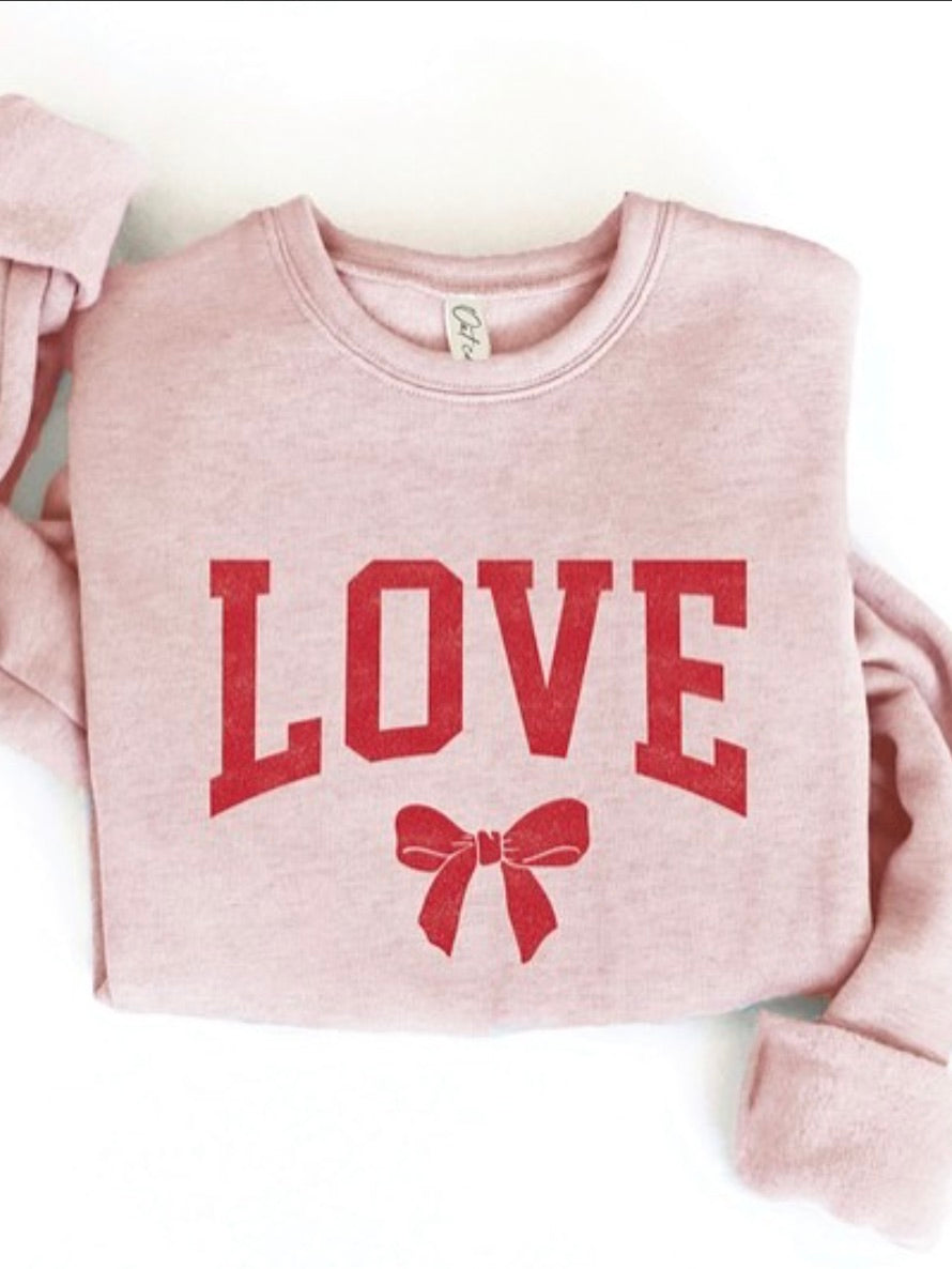 Wrap yourself in cozy charm with the Lovely Bow Graphic Sweatshirt! Featuring the word LOVE boldly displayed on the front and accented with a dainty bow detail underneath, it’s the perfect mix of sweet and stylish. Whether you’re lounging at home or stepping out, this crewneck is your go-to for effortlessly cute vibes!