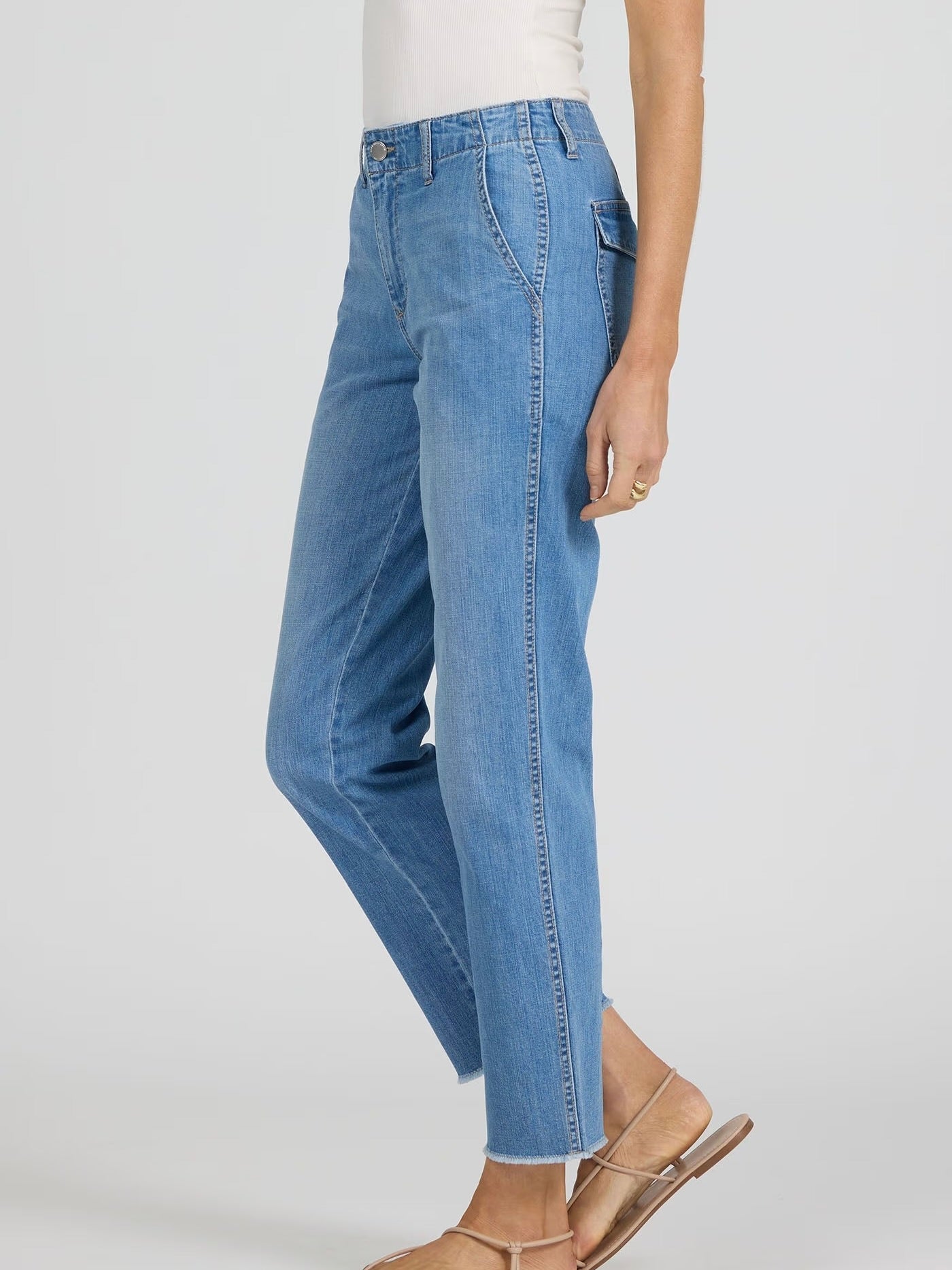 The Portia Denim Pant is your everyday go-to with a laid-back feel and timeless medium wash. Designed with a mid rise and cropped length, they’re easy to dress up with a blazer or keep casual for day-to-day plans. Comfortable with just the right amount of stretch, they bring effortless versatility to whatever’s on your calendar.