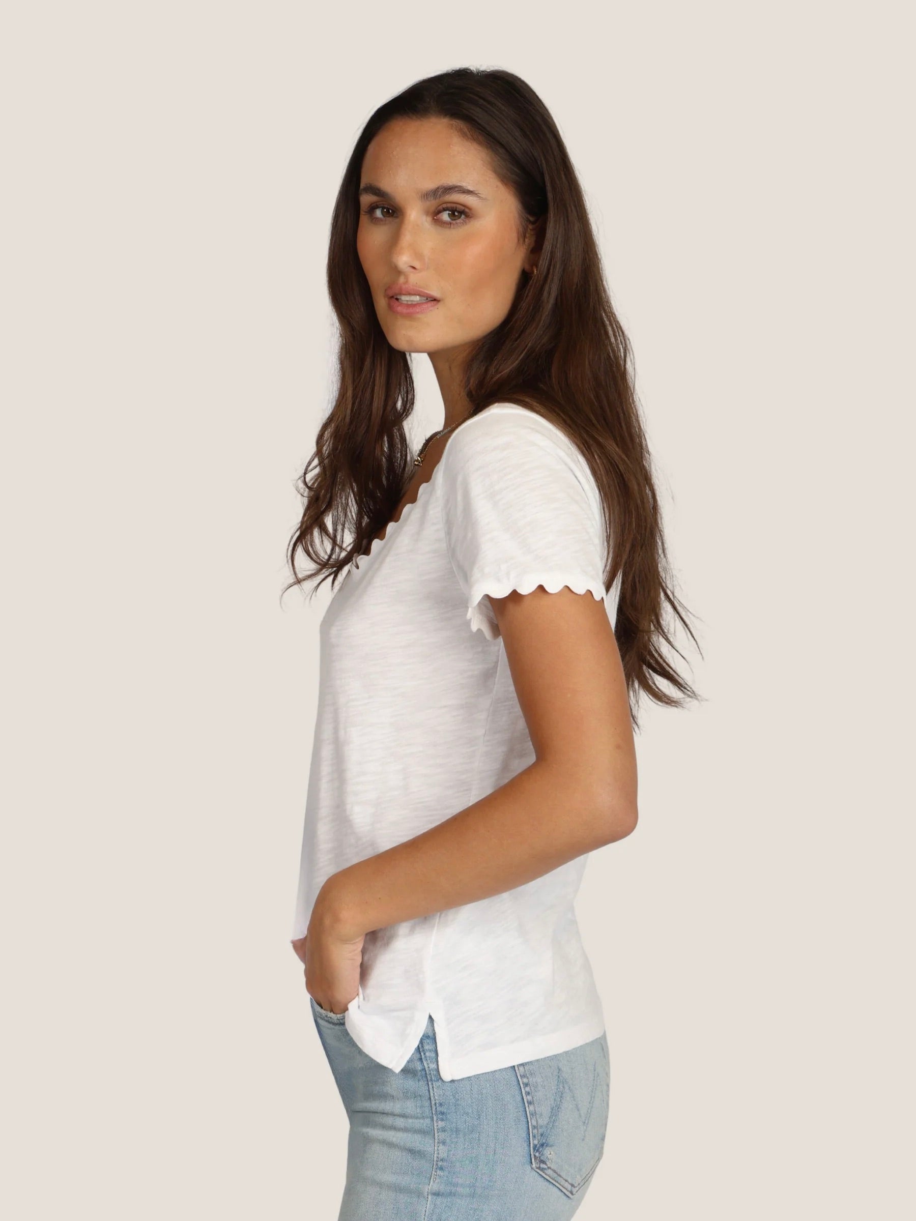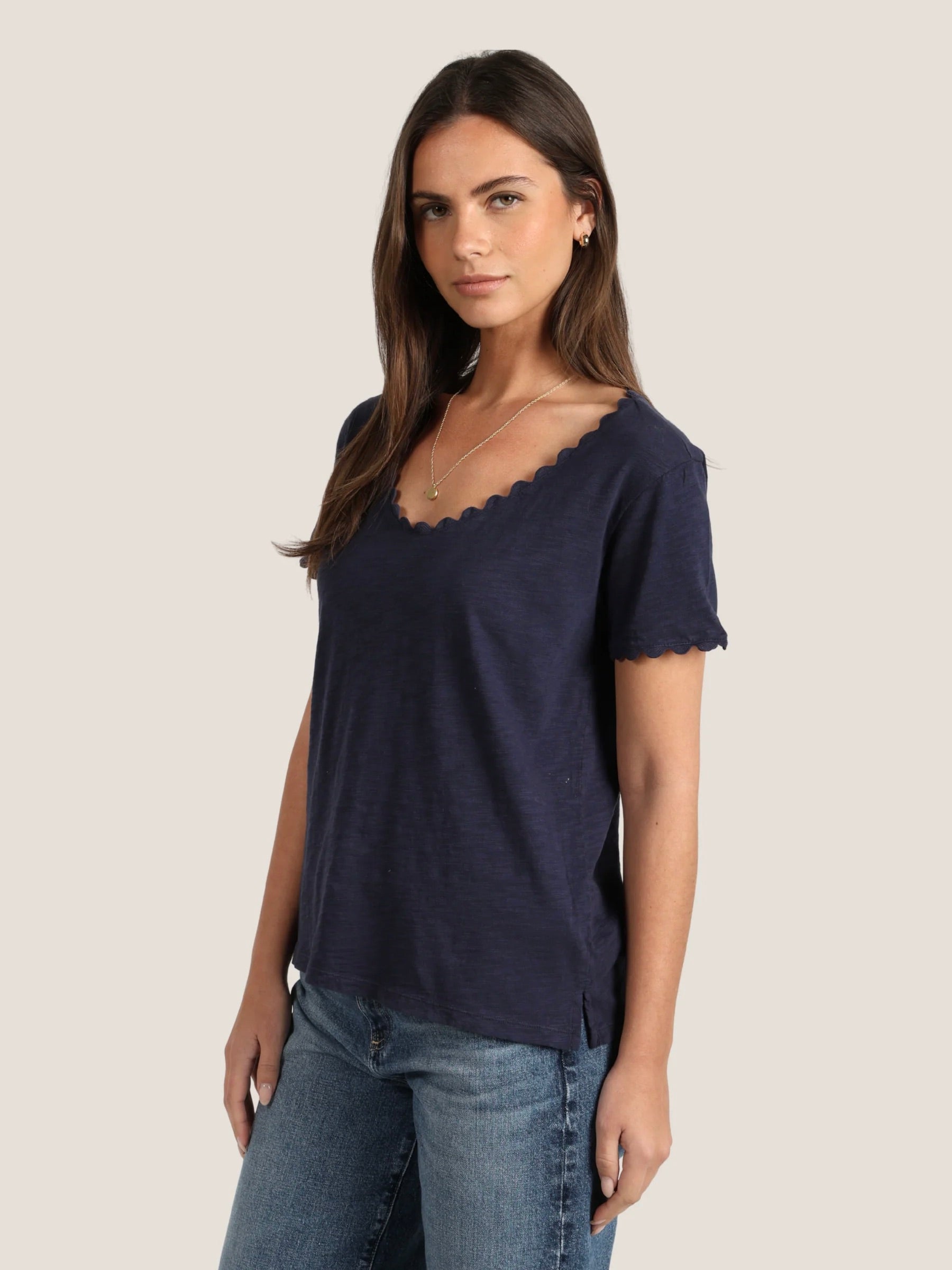 The Ric-Rac Tee is your everyday favorite—with a fun little twist. Made from 100% cotton, it’s soft, breathable, and easy to wear on repeat. The V neckline keeps it flattering, while the ric rac trim adds a playful pop of detail that sets it apart from your basic tee. Finished with short sleeves and a classic fit, it’s an instant upgrade to denim, shorts, or layered under a jacket.
