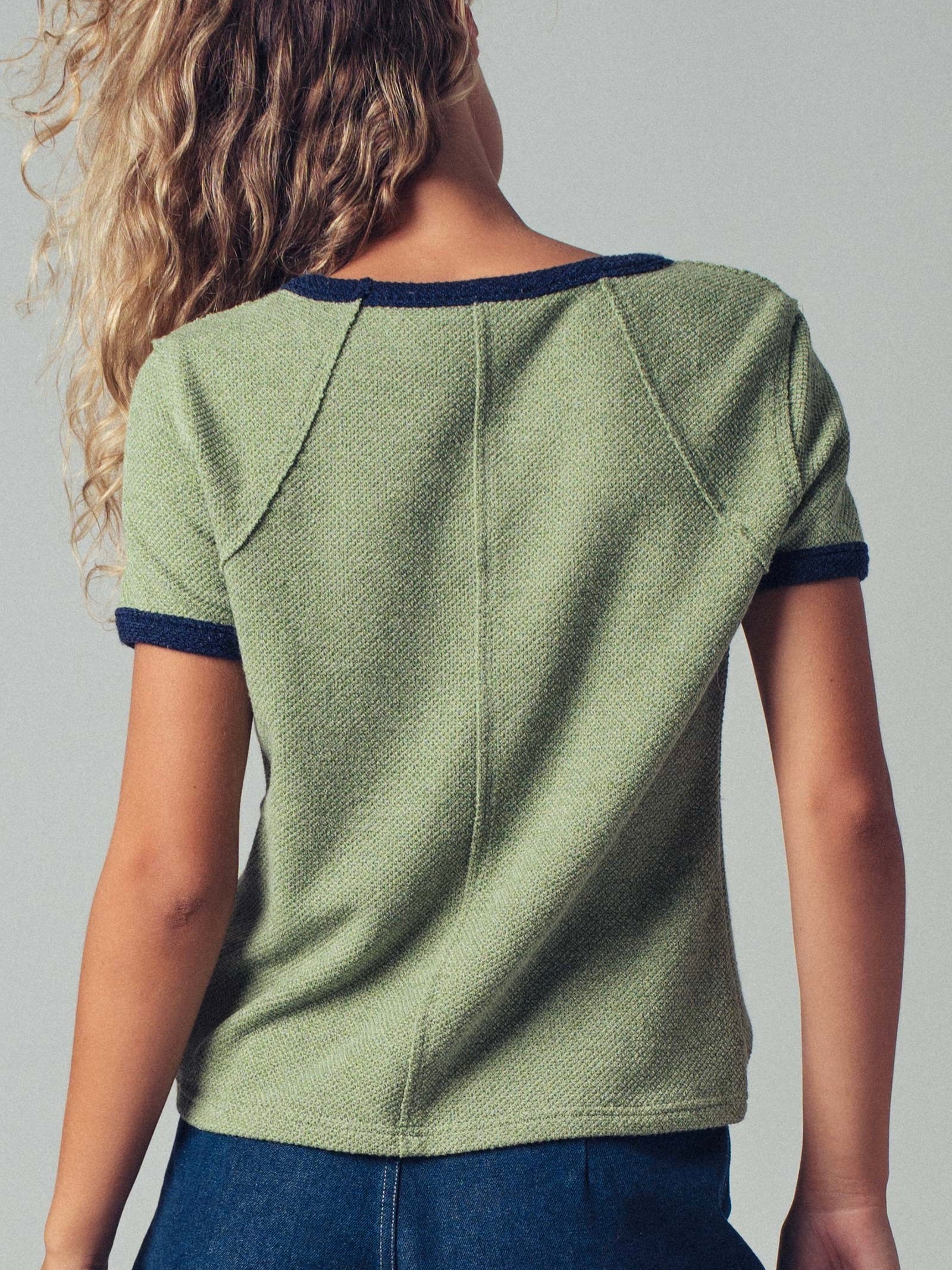 The Julie Top brings easy charm to your everyday style. Its soft textured fabric, contrast trim, and exposed seams give it that perfectly modern, slightly elevated feel. Finished with a classic crew neckline and short sleeves, it’s the kind of top that looks effortlessly put together whether you pair it with denim, trousers, or a chic skirt. A simple standout for any day of the week.