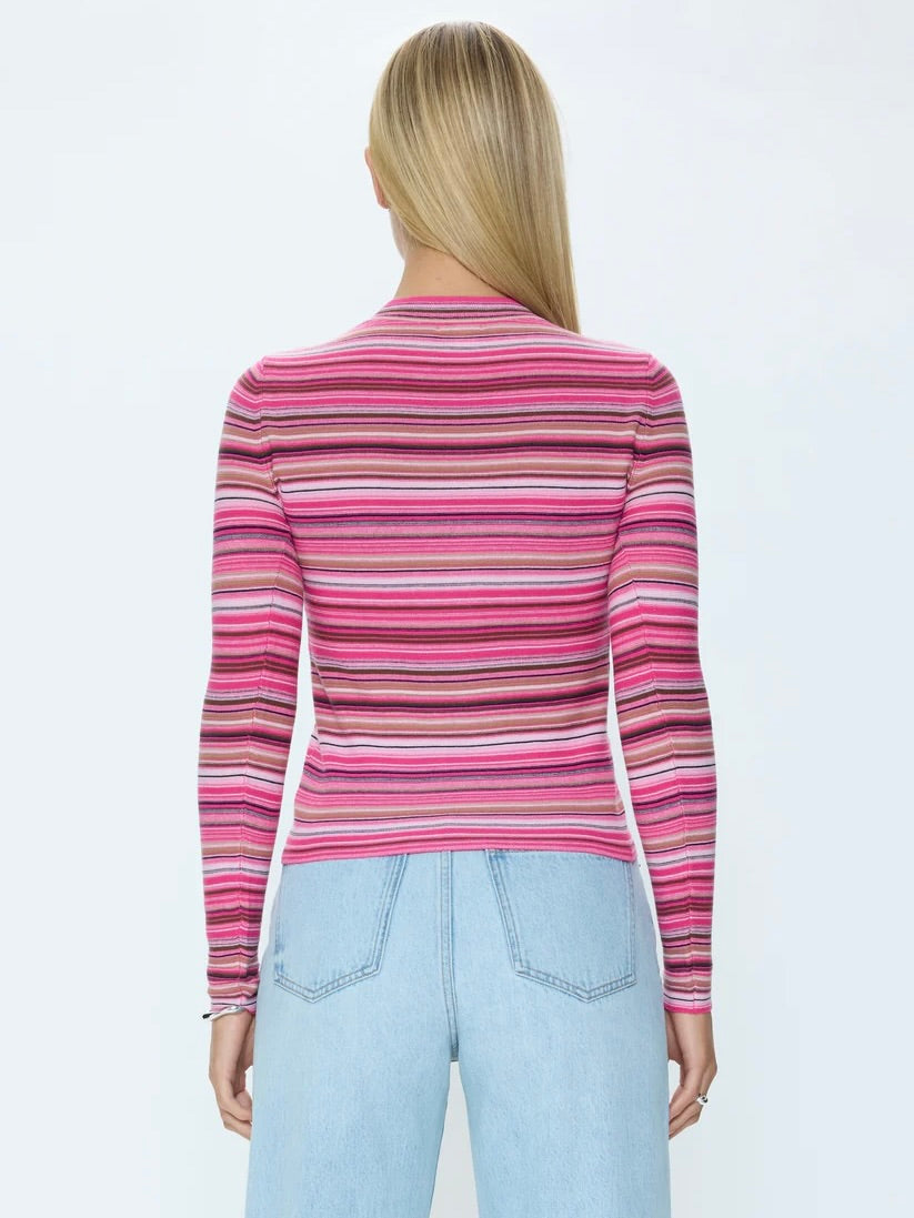 The Madison reimagines the classic crewneck with its streamlined silhouette and breathable 100% cotton construction. Balancing softness and structure, the pink and brown multi stripes lend a playful touch, creating a versatile piece that transitions easily from weekday to weekend.