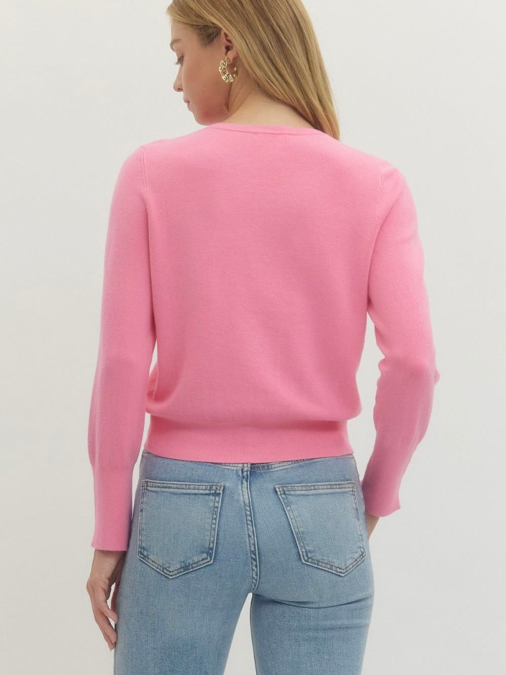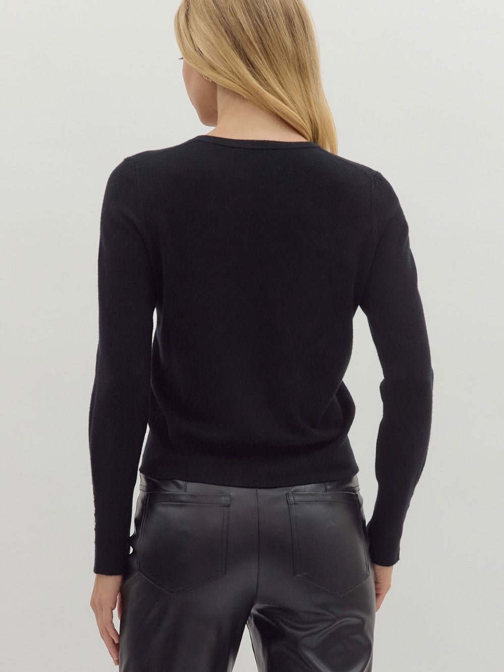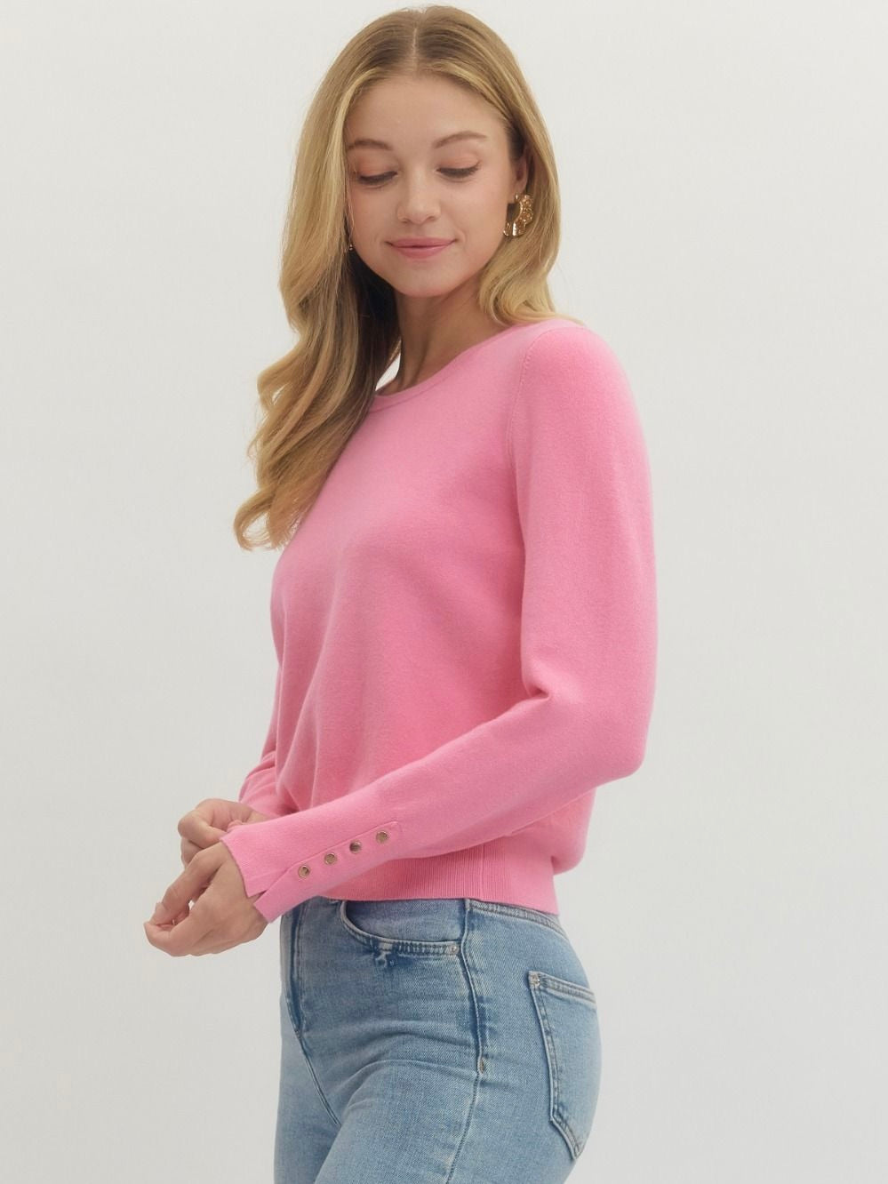 The Button Detail Knit Sweater is a timeless layer with a subtle twist. Its classic fit and round neckline keep things polished, while the cuff buttons add just the right amount of charm. Soft, stretchy knit makes it easy to wear from workdays to weekends. A versatile piece you’ll reach for again and again.