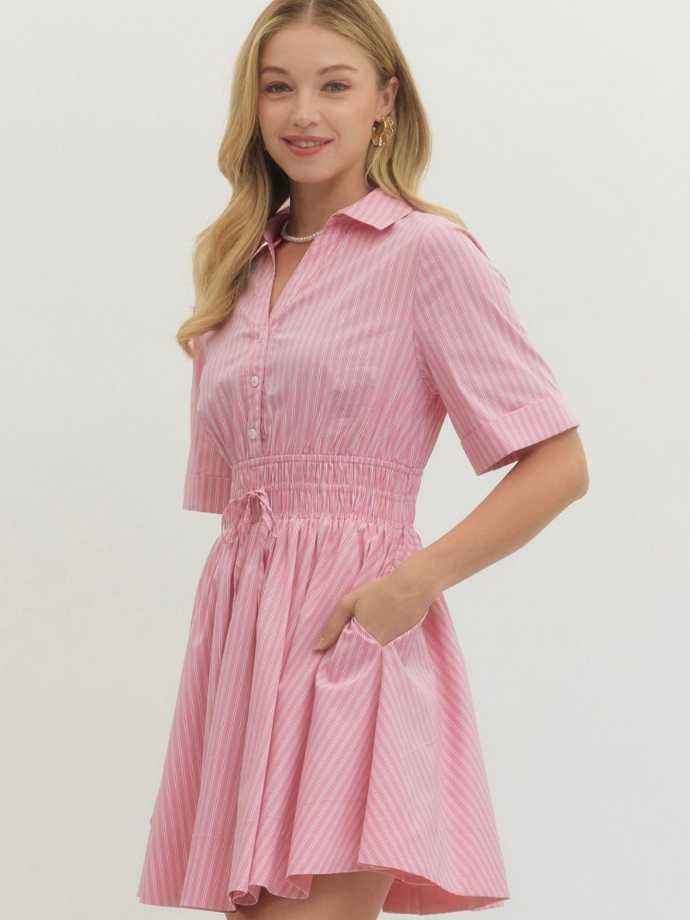 The Gail Dress is equal parts cute and carefree, made for days when you want to look put-together with zero fuss. The collared neckline and button front give it a polished feel, while the smocked waist adds comfort and shape in all the right places. Finished with short sleeves, handy side pockets, and an easy above-the-knee length, it’s ready for everything from brunch dates to busy afternoons.