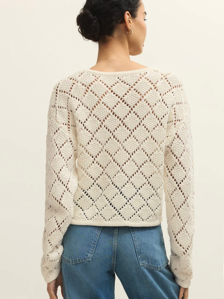 The Hullen Crochet Sweater is light, breezy, and full of texture. Made from 100% cotton with a diamond crochet pattern, it’s perfect for layering over jeans or linen pants. Effortless and stylish, it adds a little instant polish to any casual look.