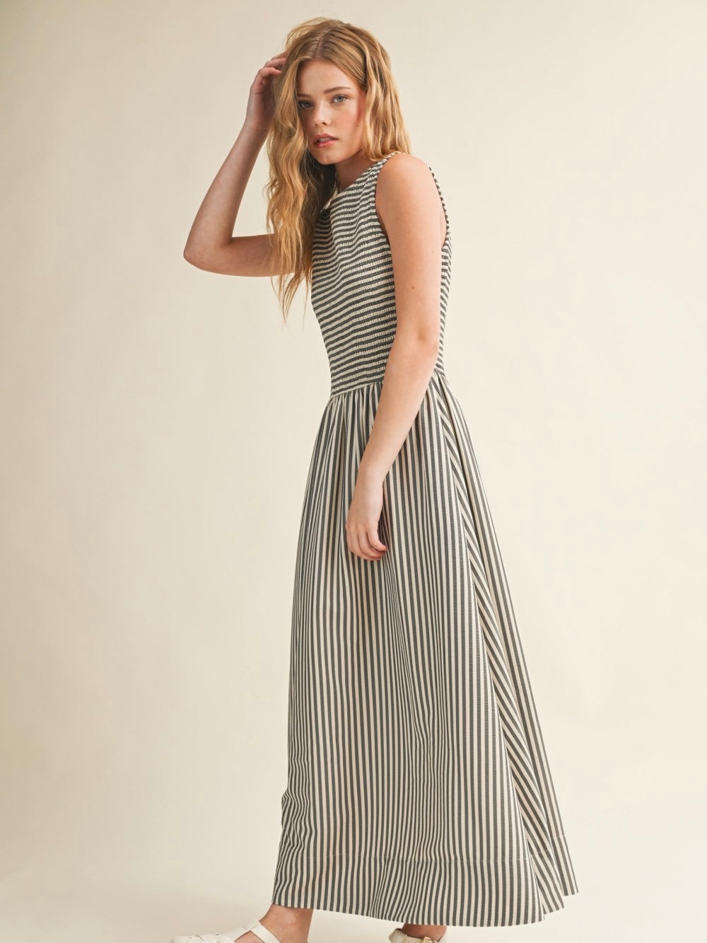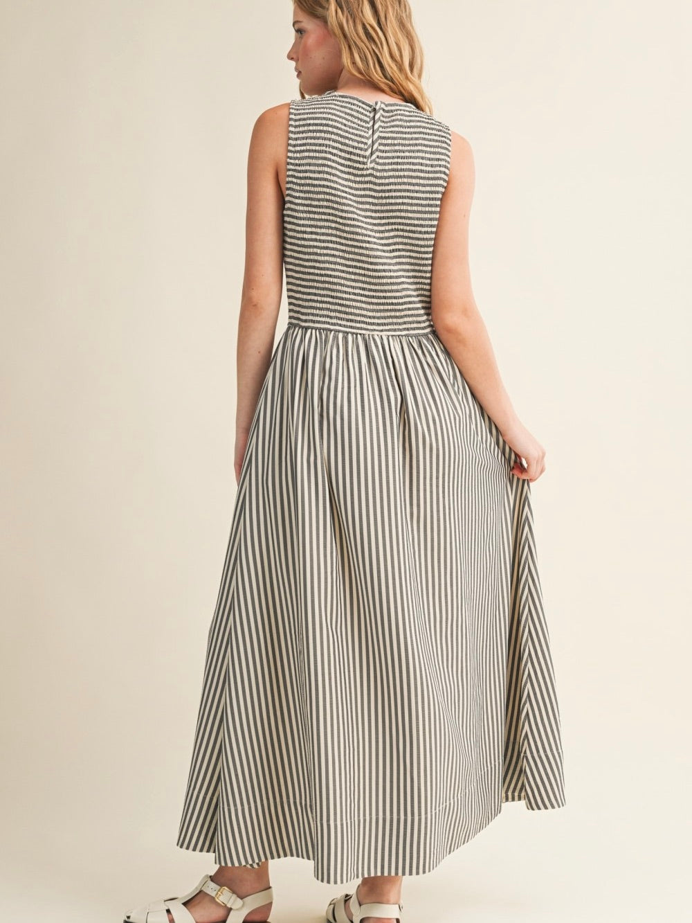Meet your new go-to for effortless drama (the good kind). The Petra Dress flows into a full maxi length with an easy sleeveless cut and a classic round neckline, while the button-back detail adds a fun little surprise. Made with a soft stretch fabric that moves with you, this is the kind of dress you throw on once and feel instantly done.