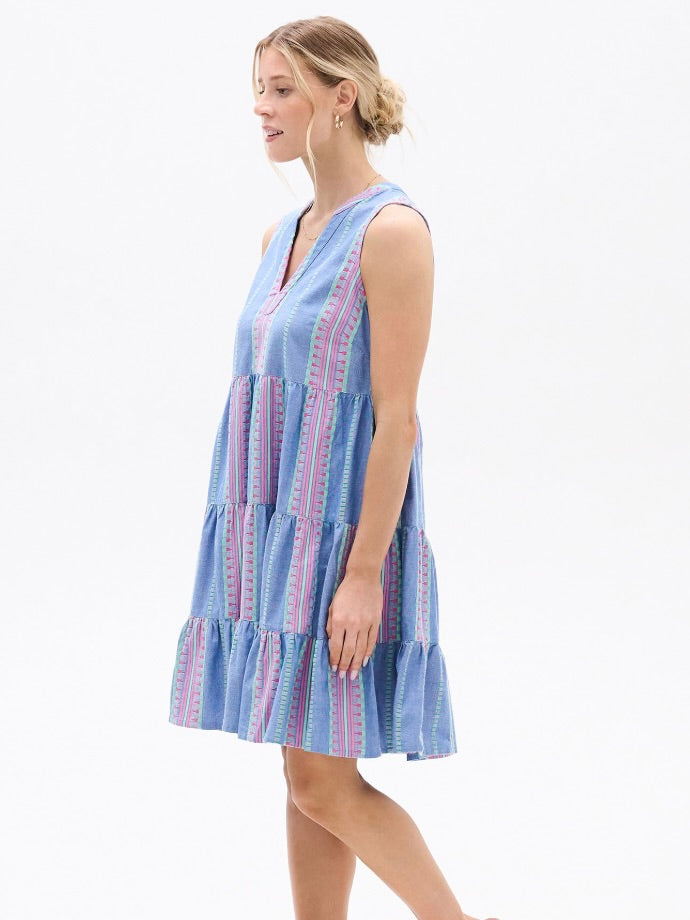 The Savannah Dress is light, flirty, and effortlessly easy to wear. With a flattering V neckline, sleeveless silhouette, and a tiered skirt, it moves beautifully with every step. Finished above the knee, it’s perfect for casual outings, brunches, or sunny-day adventures.