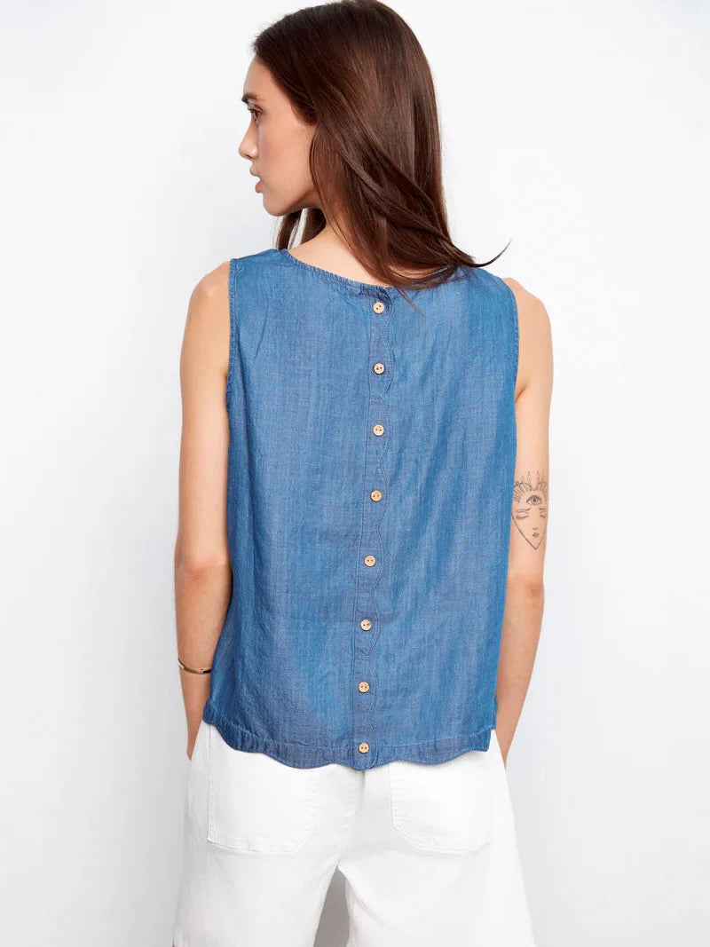 Elevate your spring wardrobe with our Casey Scallop Hem Sleeveless Top, where effortless style meets lightweight comfort. This versatile staple is an absolute must-have for any fashion-forward wardrobe.