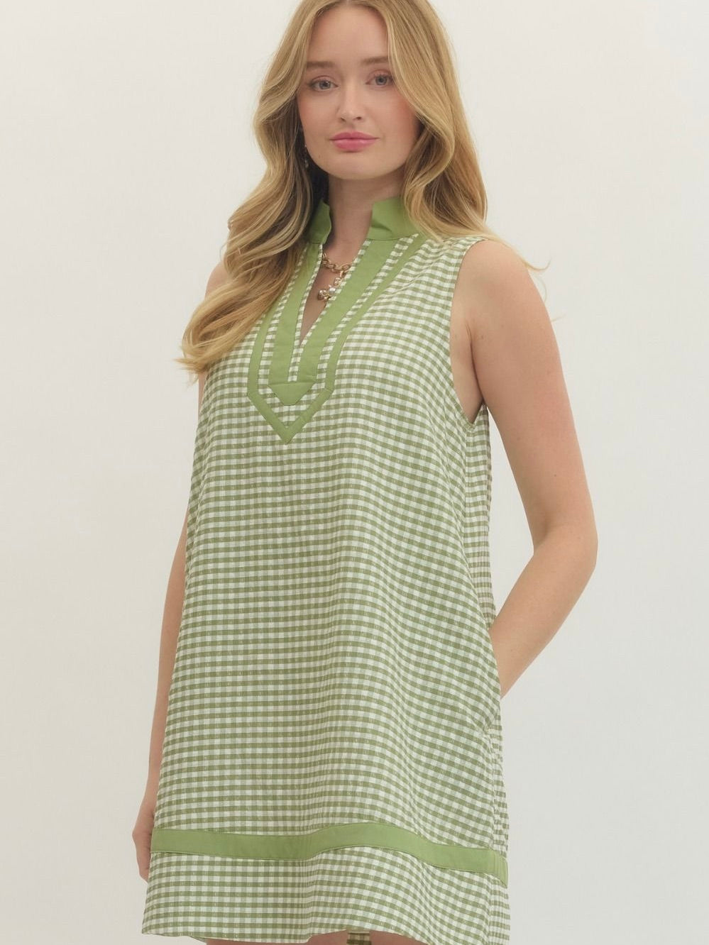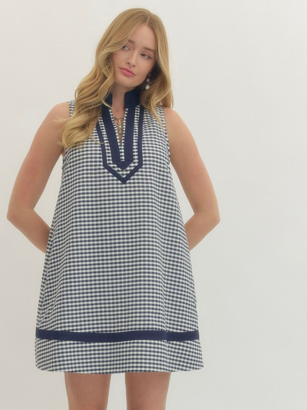 The Siri Dress is simple, sleek, and ready to go anywhere. Made from 100% polyester, it has a smooth, easy-to-wear feel that holds up all day. The V neckline and sleeveless silhouette keep it light and flattering, while side pockets add a practical touch. Finished above the knee, it’s perfect for pairing with sneakers, sandals, or a jacket for a versatile, put-together look.