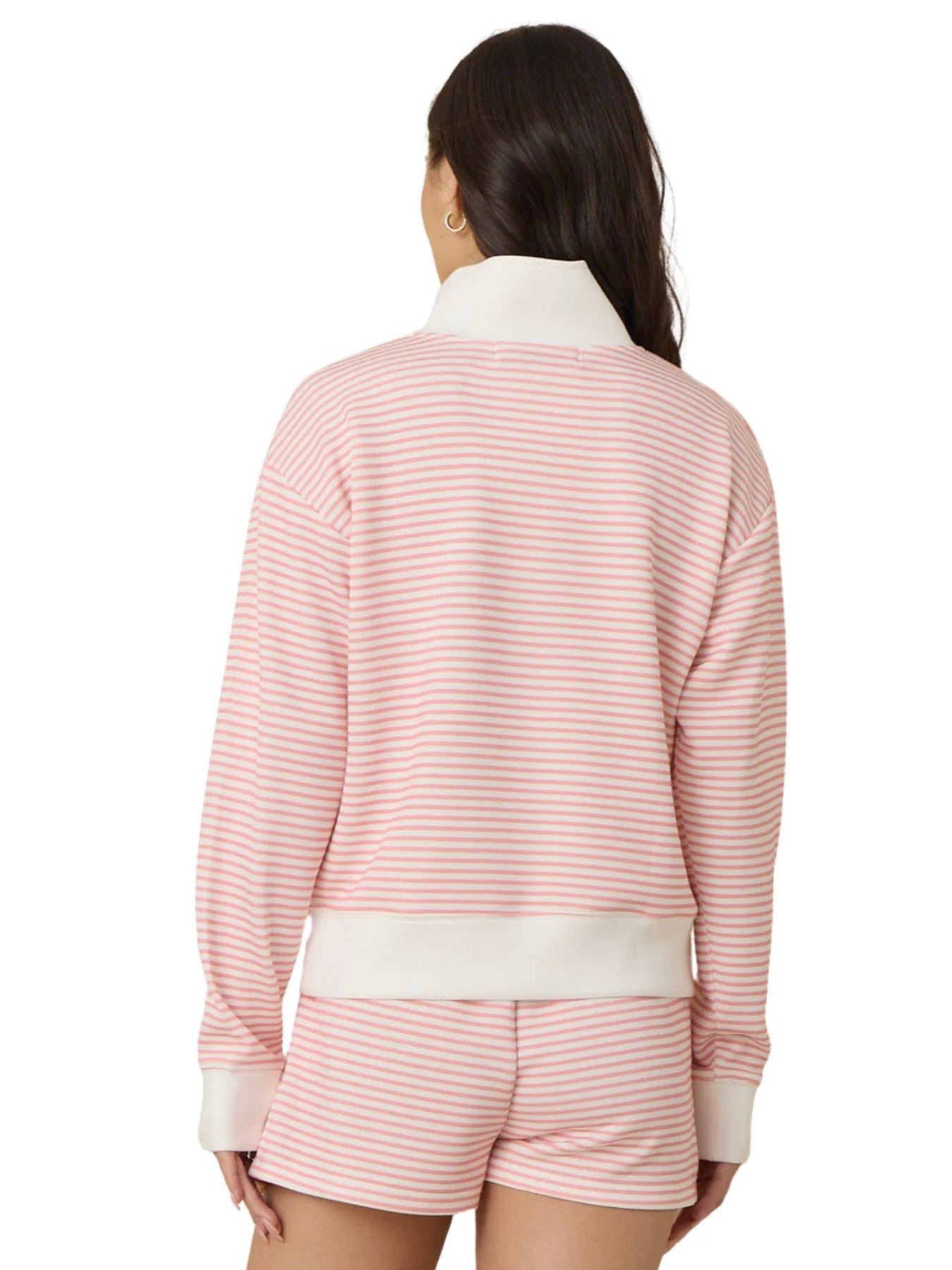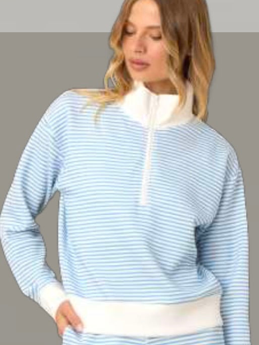 The Striped Quarter Zip is a cozy, chic striped French terry sweatshirt perfect for everyday wear. Soft, breathable fabric and a half zip design offer comfort and easy temperature control, ideal for transitional weather. Classic stripes add a playful touch, while the relaxed fit pairs effortlessly with jeans or skirts, making this versatile quarter zip pullover a go-to layer for casual or polished looks.